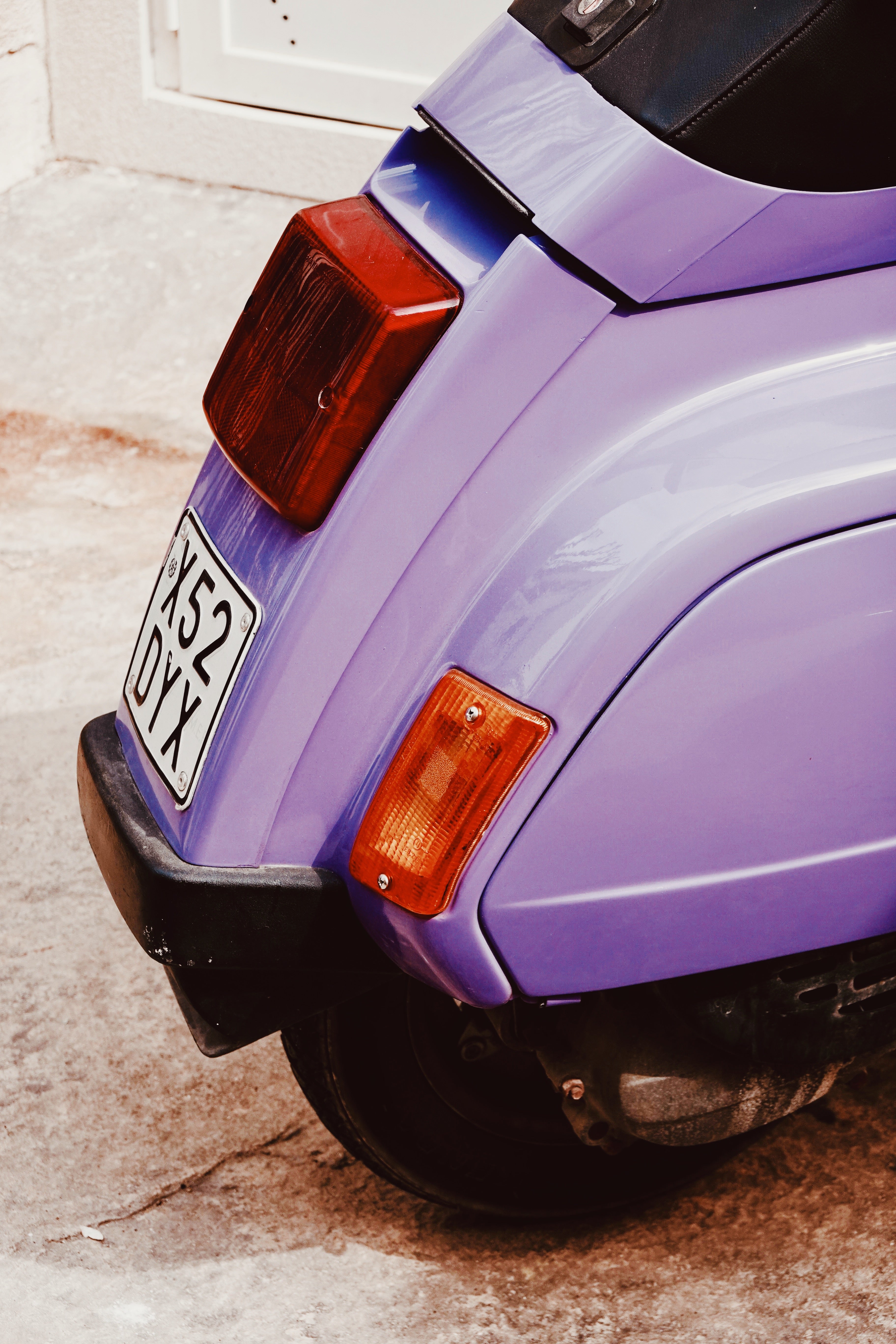 The Italians certainly know how to get around in style! This lila Vespa is completely at home in the little streets of Puglia.