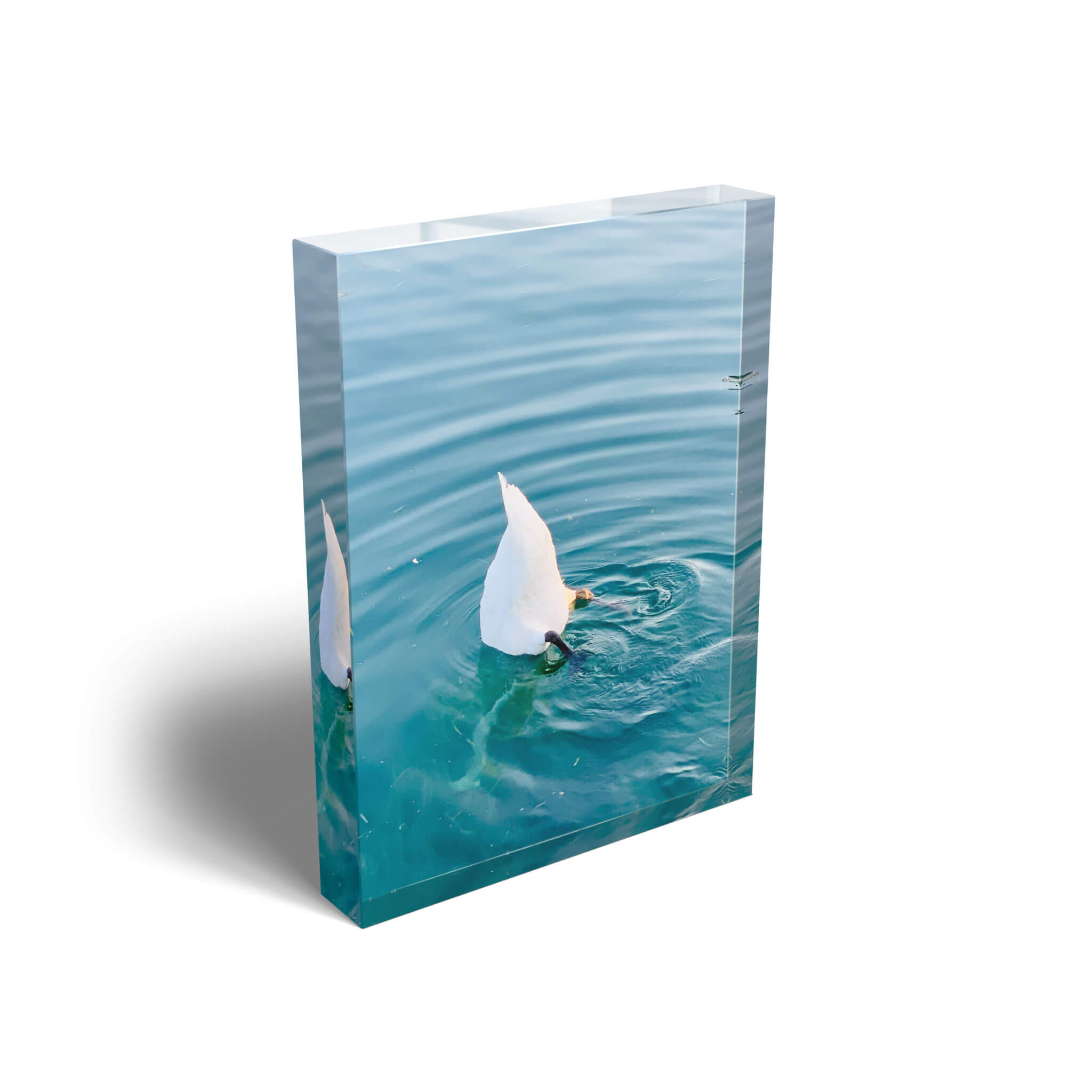 The glossy photo paper, mounted behind 25 mm of crystal-clear acrylic glass, creates a unique 3D effect with stunning depth. While the back is white and opaque, the design remains vividly visible from both the front and sides. For the photo prints, we use premium Fujifilm Crystal Archive DPII paper, ensuring exceptional sharpness and vibrant, brilliant colors for your artwork.