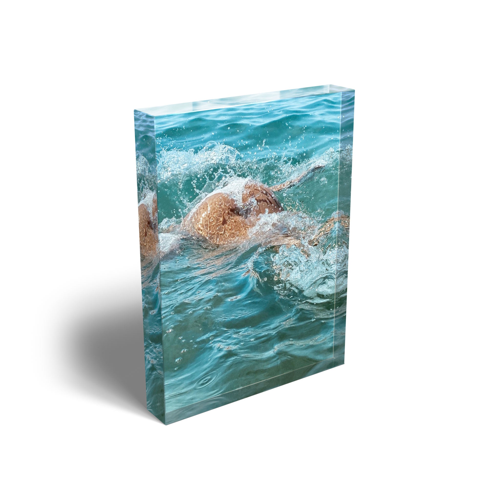 The glossy photo paper, mounted behind 25 mm of crystal-clear acrylic glass, creates a unique 3D effect with stunning depth. While the back is white and opaque, the design remains vividly visible from both the front and sides. For the photo prints, we use premium Fujifilm Crystal Archive DPII paper, ensuring exceptional sharpness and vibrant, brilliant colors for your artwork.