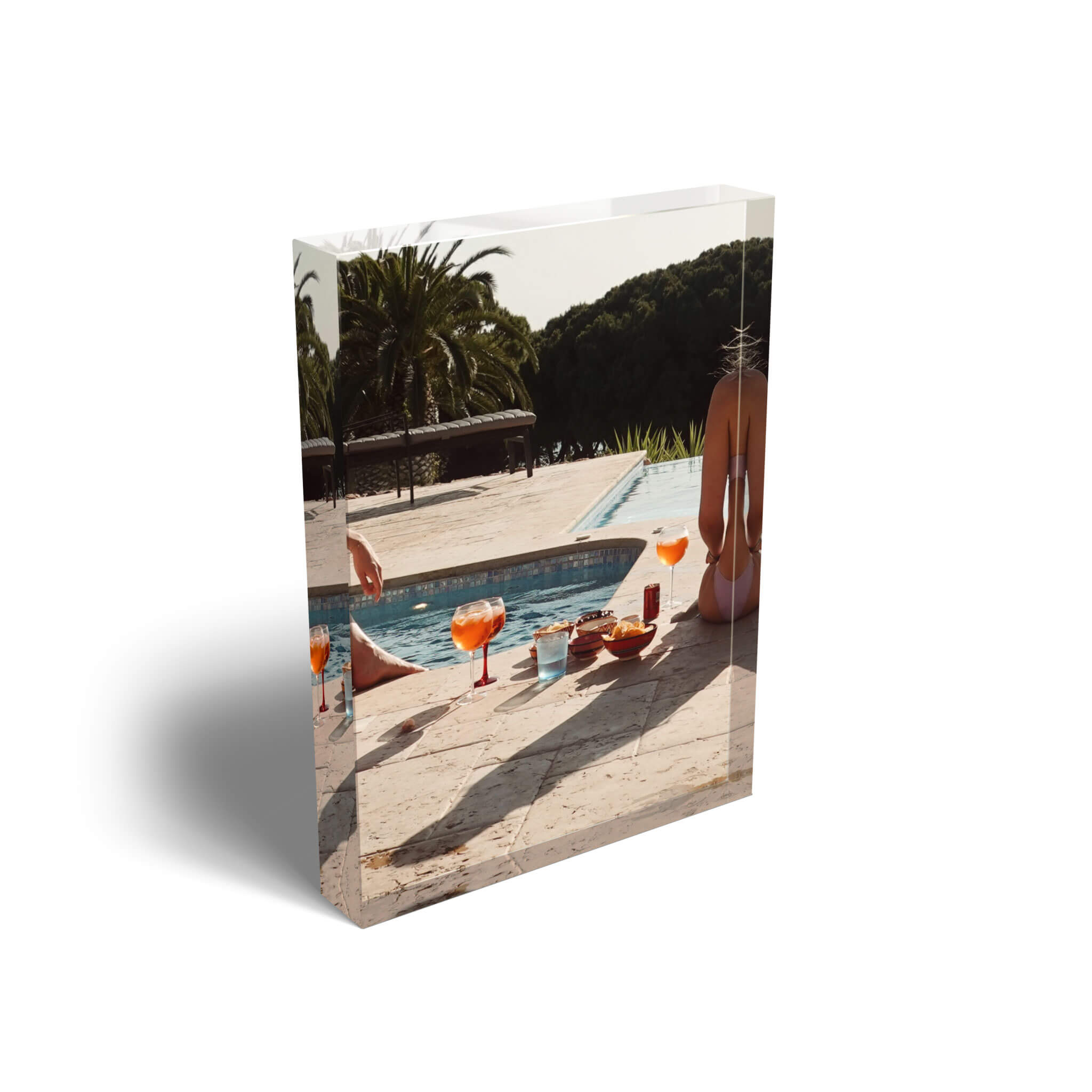 Friends sipping Aperol Spritz at the poolside, a carefree setting I wanted to eternalize