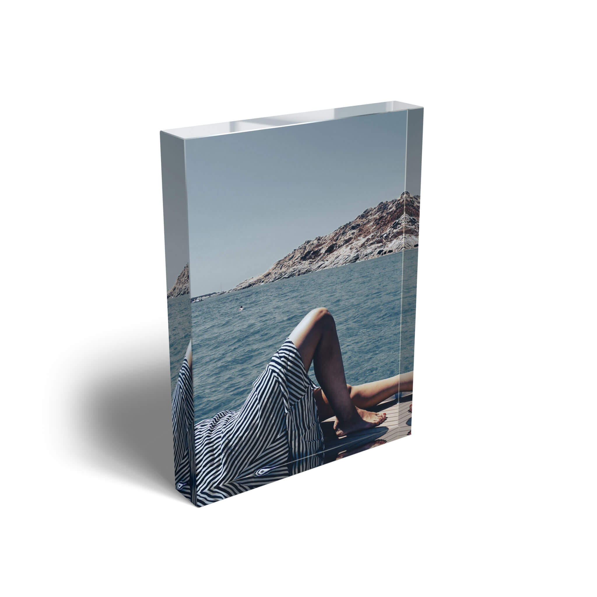 The glossy photo paper, mounted behind 25 mm of crystal-clear acrylic glass, creates a unique 3D effect with stunning depth. While the back is white and opaque, the design remains vividly visible from both the front and sides. For the photo prints, we use premium Fujifilm Crystal Archive DPII paper, ensuring exceptional sharpness and vibrant, brilliant colors for your artwork.