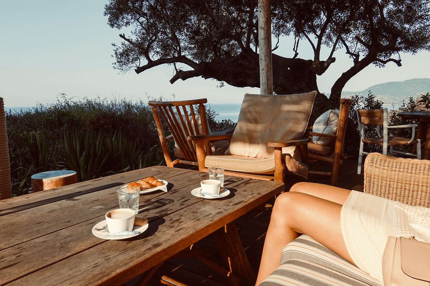 Croissants & coffee for breakfast with a stunning view of the Mediterranean Sea. Is she waiting for a special someone?