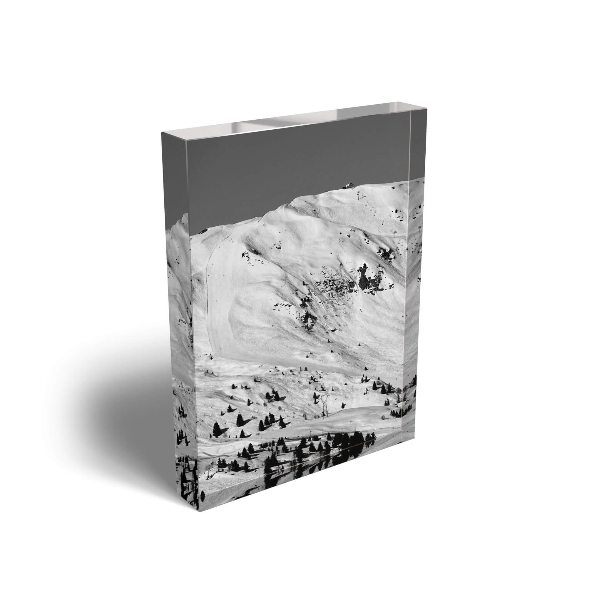 The glossy photo paper, mounted behind 25 mm of crystal-clear acrylic glass, creates a unique 3D effect with stunning depth. While the back is white and opaque, the design remains vividly visible from both the front and sides. For the photo prints, we use premium Fujifilm Crystal Archive DPII paper, ensuring exceptional sharpness and vibrant, brilliant colors for your artwork.