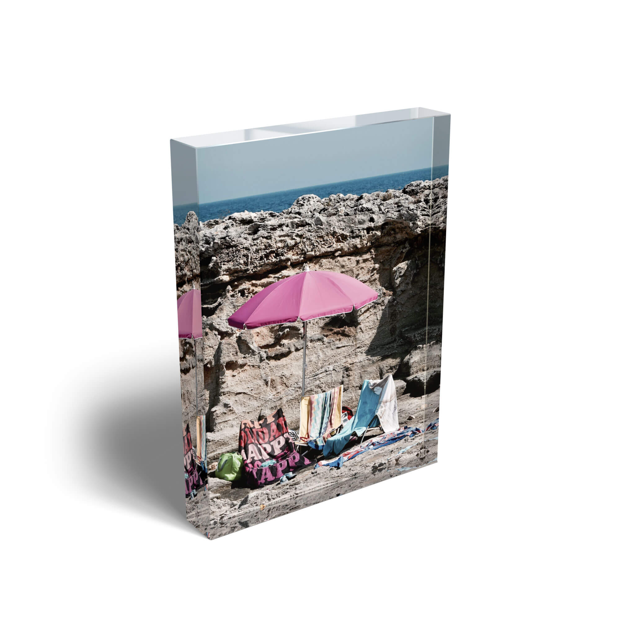 The glossy photo paper, mounted behind 25 mm of crystal-clear acrylic glass, creates a unique 3D effect with stunning depth. While the back is white and opaque, the design remains vividly visible from both the front and sides. For the photo prints, we use premium Fujifilm Crystal Archive DPII paper, ensuring exceptional sharpness and vibrant, brilliant colors for your artwork.